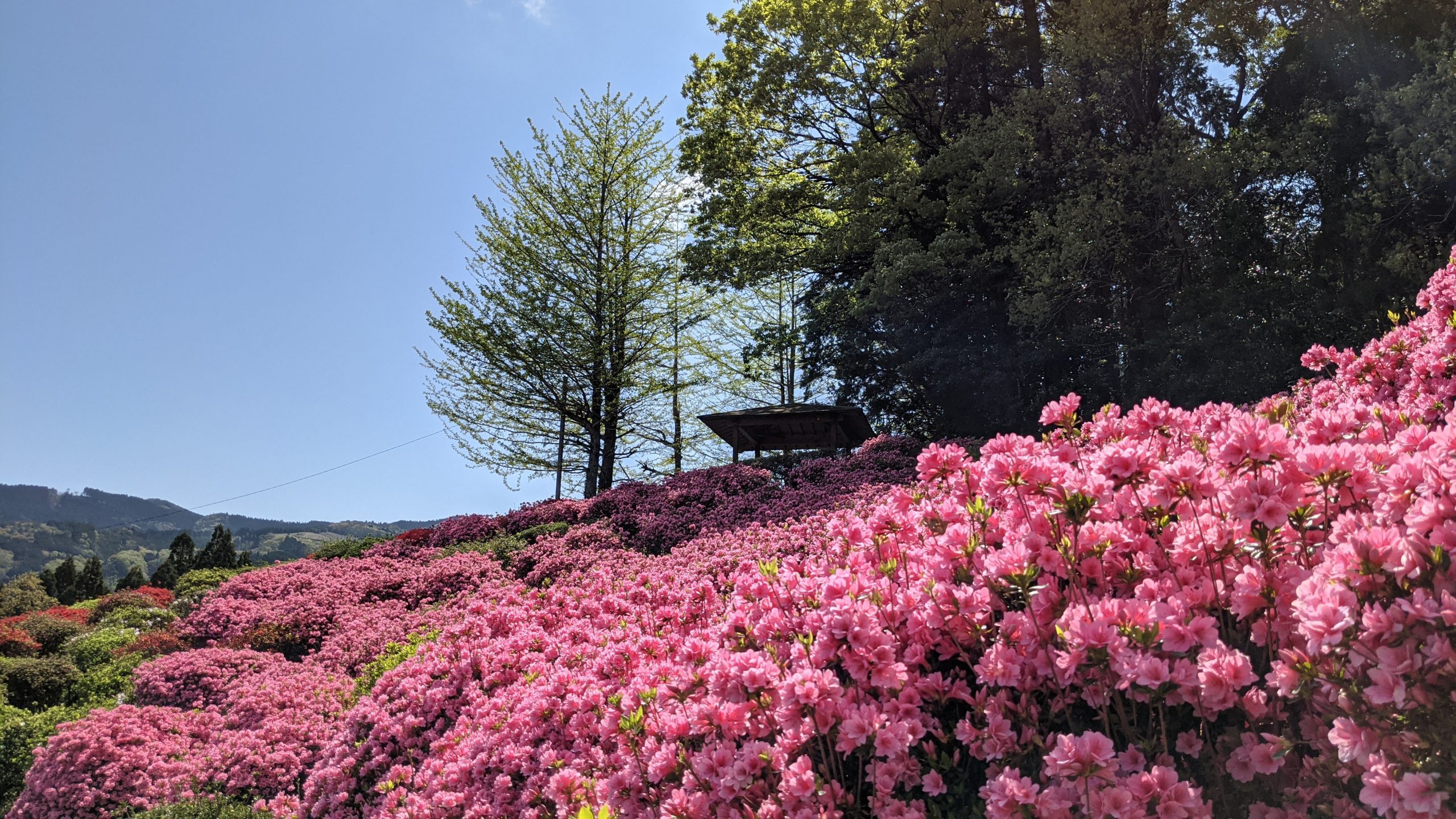 毎年見事に花咲く、天神山のつつじ。広さ約2ヘクタールに1万8千本のつつじが植栽されています。